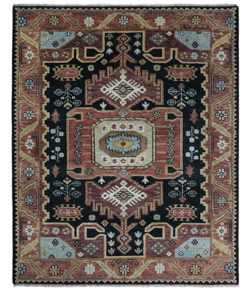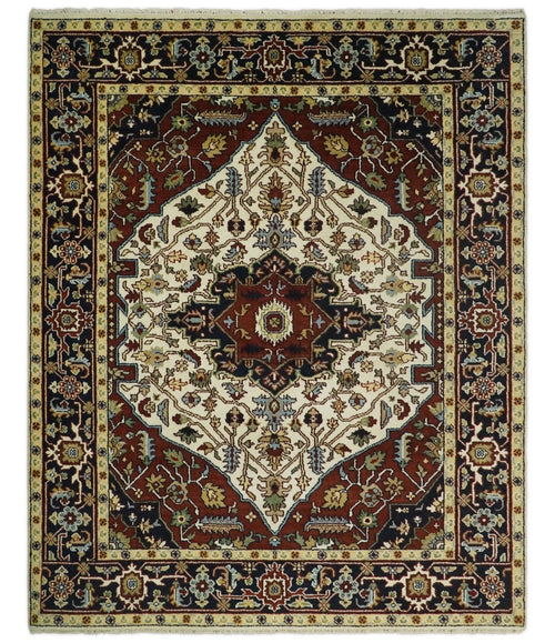8x10 Hand Knotted Ivory, Black and Rust Traditional Heriz Serapi Antique Wool Rug | TRDCP753