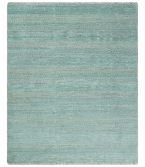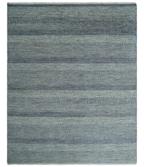 8x10 Hand Knotted Blue and Ivory Modern Geometric Trellis Scandinavian Wool Area Rug | TRDCP931810