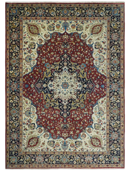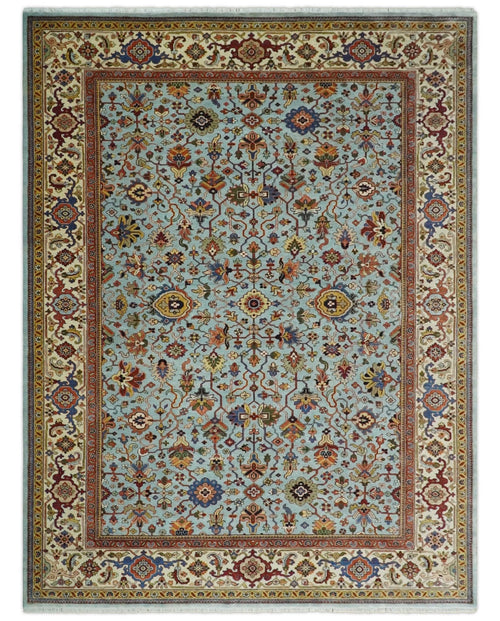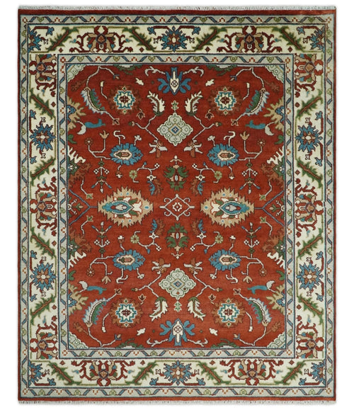 8x10 and 9x12 Traditional Rust, Ivory and Blue Hand knotted wool Area Rug