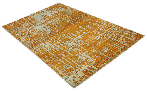 6x9 Gold, Ivory and rust Modern Abstract Recycled Silk Area Rug