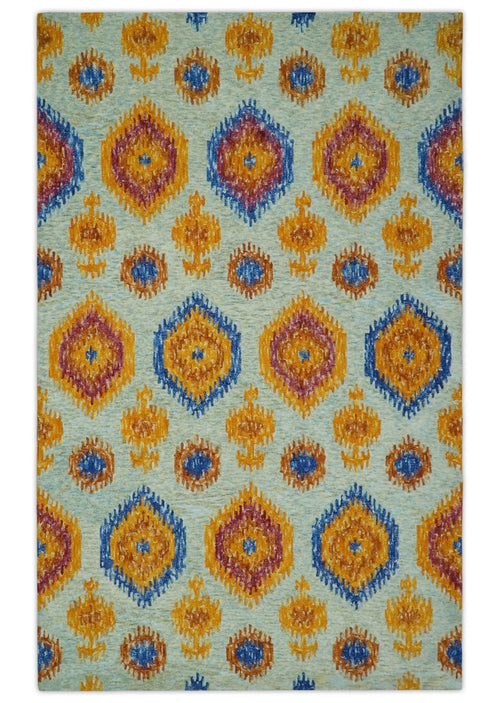 5x8 Ivory, Gold and Blue Traditional Ikat design Hand Tufted Wool Area Rug