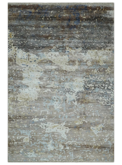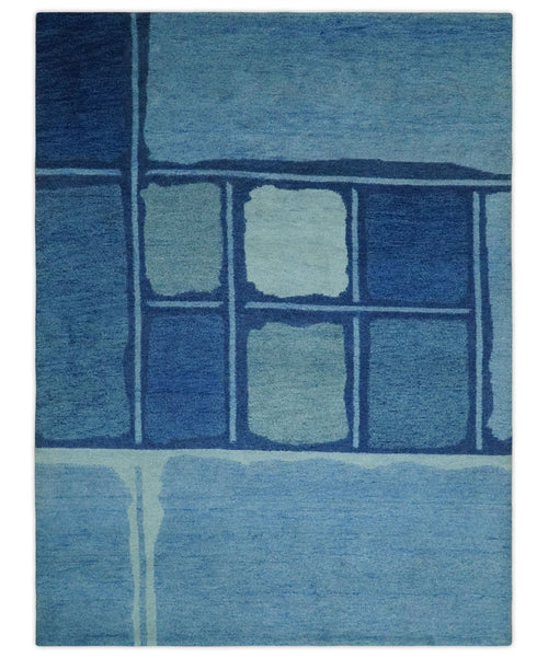 6x9 Blue, Ivory and Gray Modern Abstract Hand Loomed Blended wool and Art silk Area Rug