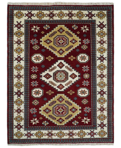 6x9 Hand Knotted Antique Kazak Red and Ivory Traditional Tribal Armenian Rug | KZA14