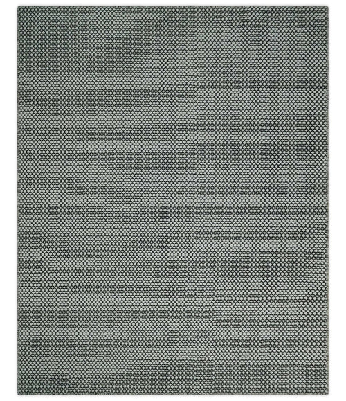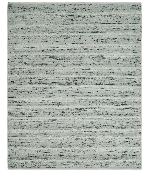 8x10 Contemporary Loop and Cut texture Hand knotted Ivory and Charcoal wool Area Rug