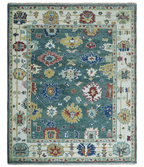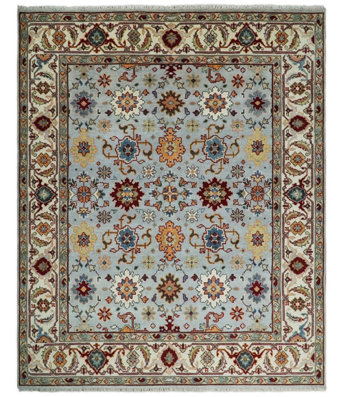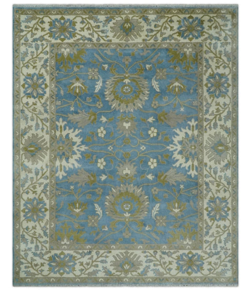 8x10 All Wool Traditional Persian Blue Teal and Ivory Vibrant Colorful Hand knotted Oushak Area Rug