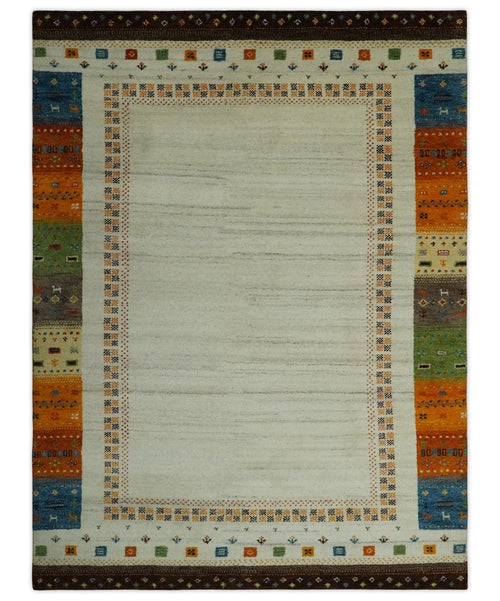 6x8 Hand Knotted Ivory multicolor Stripes Antique Traditional Wool Southwestern Lori Gabbeh Rug | TRDPC20
