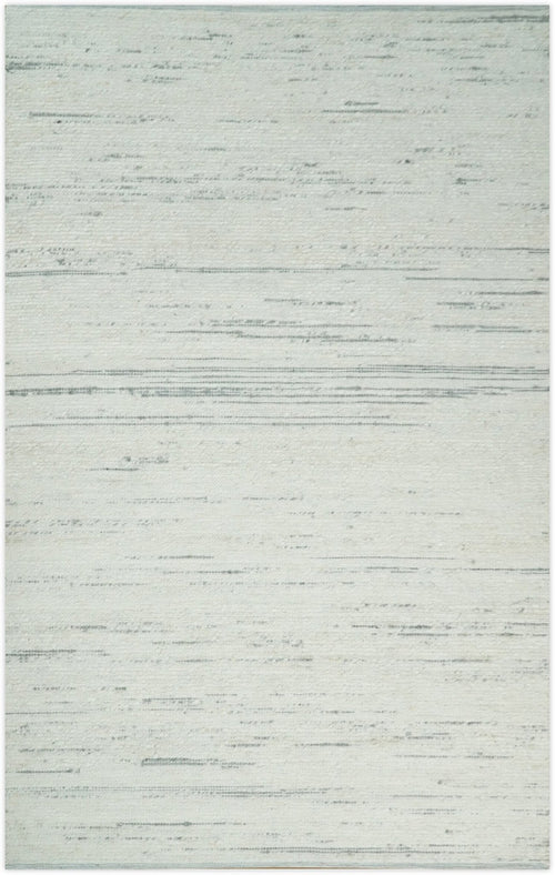 5x8 and 8x10 Hand Made Woolen Modern Stripes Ivory and Grey Area Rug | NAU003