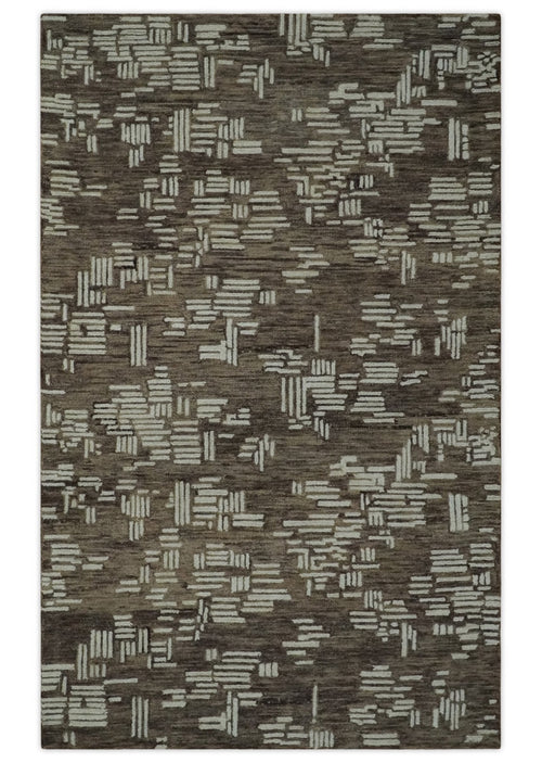 5x8 Brown and Ivory Blocks pattern Hand Tufted Farmhouse Wool Area Rug