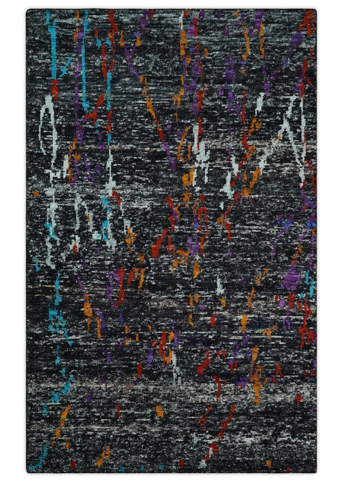 5x8 Hand Knotted Black, Ivory and Rust Modern Abstract Contemporary Recycled Silk Area Rug | OP132