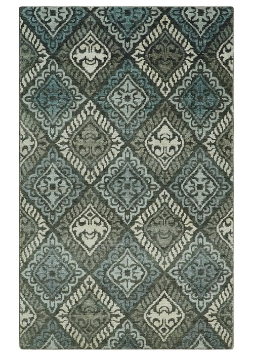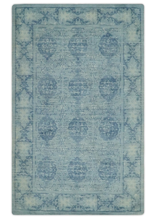 5x8 Ivory and Blue Traditional Ikat design Hand Tufted Wool Area Rug