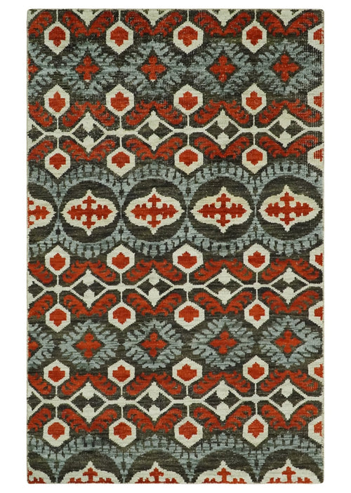 5x8 Beige, Rust, Ivory and Charcoal Geometrical Pattern Hand Tufted Wool Area Rug