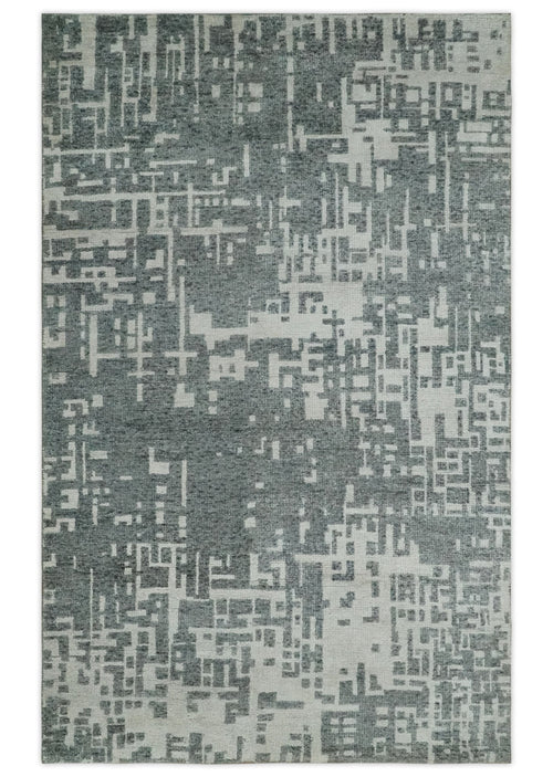 5x8 Hand Knotted Gray, Charcoal and Ivory Modern Abstract Contemporary Recycled art silk Area Rug