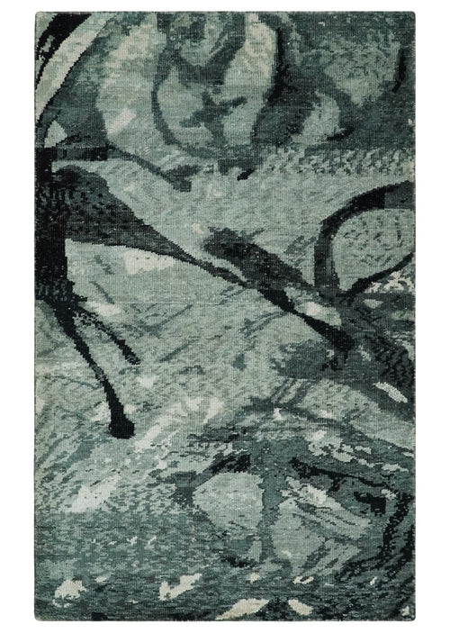 5x8 Hand Knotted Charcoal, Ivory and Blue Modern Abstract Contemporary Recycled Silk Area Rug | OP68