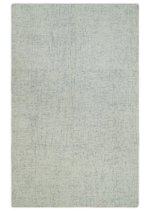 5x8 and 8x10 Hand Made Woolen Modern Blue and Ivory Area Rug | EVE001