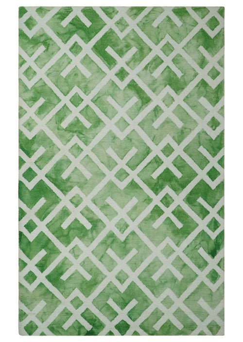 5x8 Ivory and Green Stripes Pattern Hand Tufted Wool Area Rug