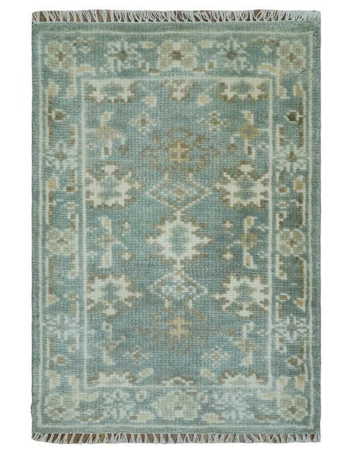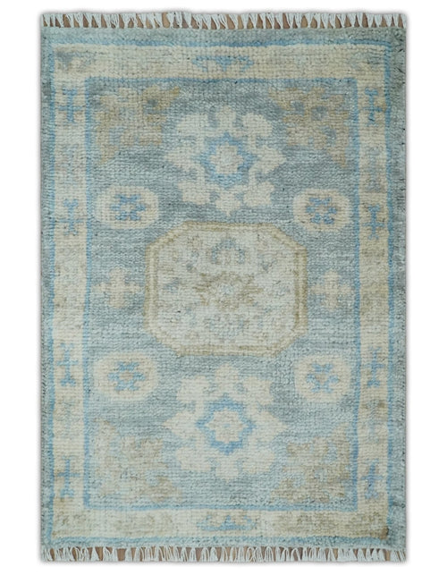 2x3 Hand Knotted Silver, Ivory and Brown Traditional Oushak Wool Rug