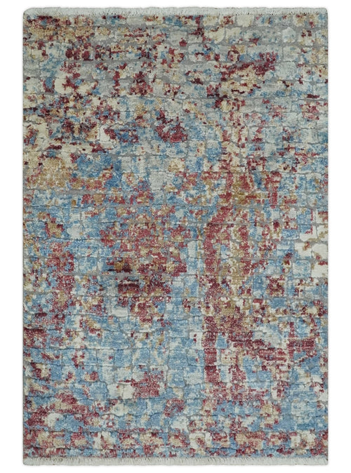 2x4 Modern Abstract Peach, Gray, Ivory and Blue Rug made with Art Silk| N3924