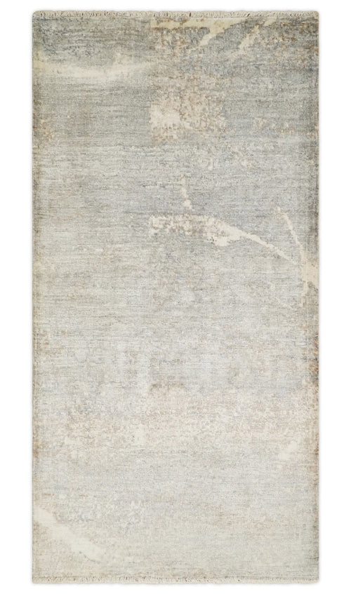 2x4 Entryway Modern Abstract Ivory and Gray Wool Rug Made with Art Silk