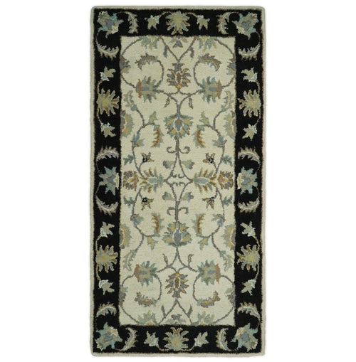 2x4 Handmade Persian Design Ivory and Black made with fine wool Area Rug | TRDCP15624