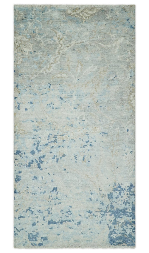2x4 Modern Abstract Blue and Ivory Rug made with Art Silk| N4124
