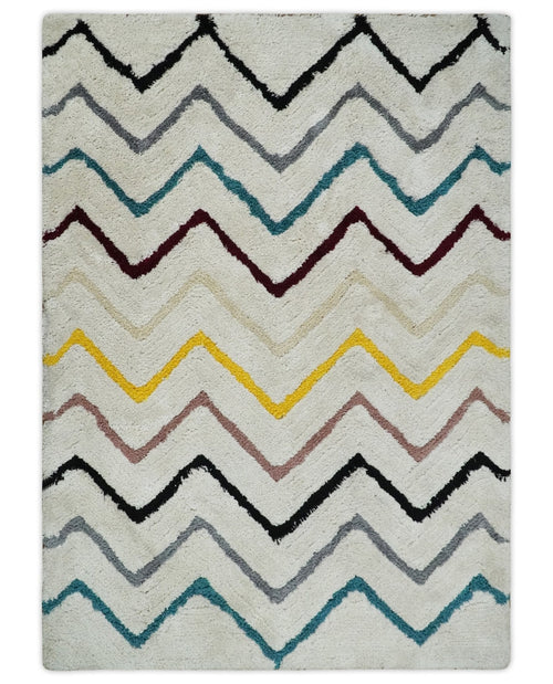 3x5, 4x6 and 5x7 Hand Woven Shag Ivory with multicolor Stripes Art Silk Soft Viscose Area Rug