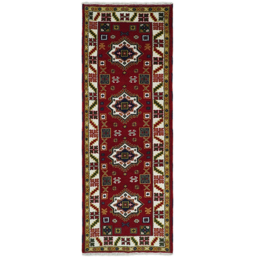 3x8 Runner Hand Knotted traditional Kazak Rust and Ivory Armenian Rug | KZA23