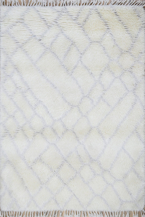 3x5, 4x6 and 5x7 Hand Woven Shag Ivory and Gray Geometrical Pattern Art Silk Soft Viscose Area Rug