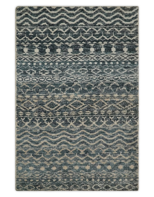 4x6 Ivory and Charcoal Handmade Moroccan Design Area Rug | TRD171746