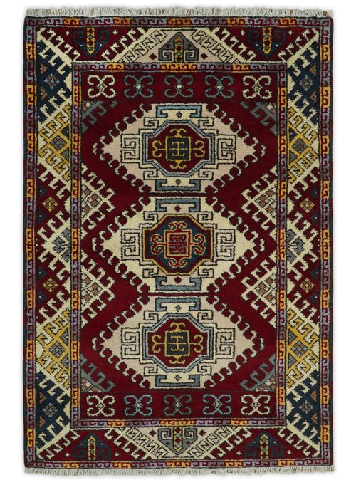 4x6 Hand Knotted traditional Kazak Ivory and Rust Traditional Tribal Armenian Rug | KZA9