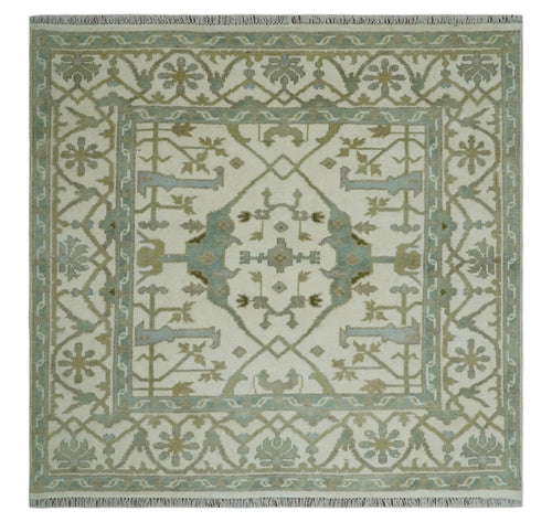 5x5 Square Hand Knotted Oriental Oushak Ivory, Aqua and Beige Wool Area Rug | TRDCP152955SS