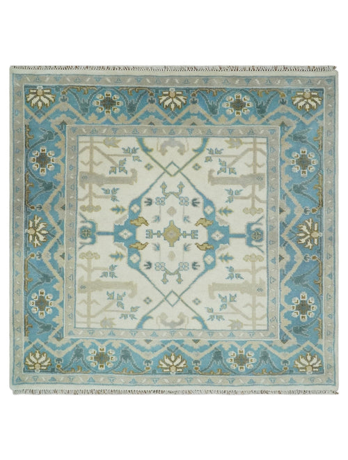 5x5 Square Hand Knotted Oriental Oushak Ivory and Blue Wool Area Rug | TRDCP151255SS