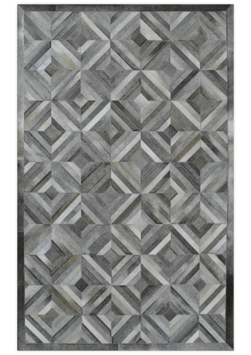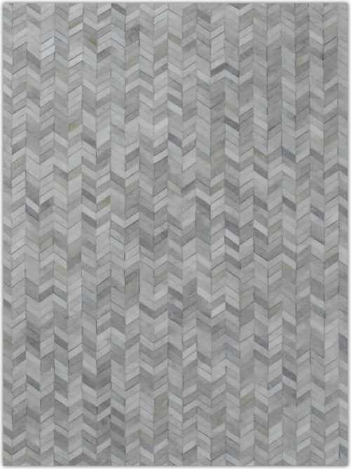 5x8 and 8x10 Genuine Leather Chevron Design Handmade Ivory and Silver Area Rug | LR4
