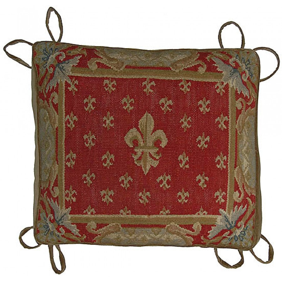 18" x 20" Aubusson chair cushion with red velvet zippered backing.  Includes removable down/feather insert.