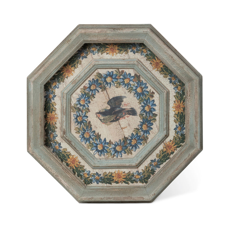 Resembling a mosaic pattern wall hanging, this intricate floral design on these wood wall tiles fit together to create beautiful and unusual wall décor. Delicate artwork in subtle colors is a feminine and a delightful addition to a parlor, living room or bedroom.