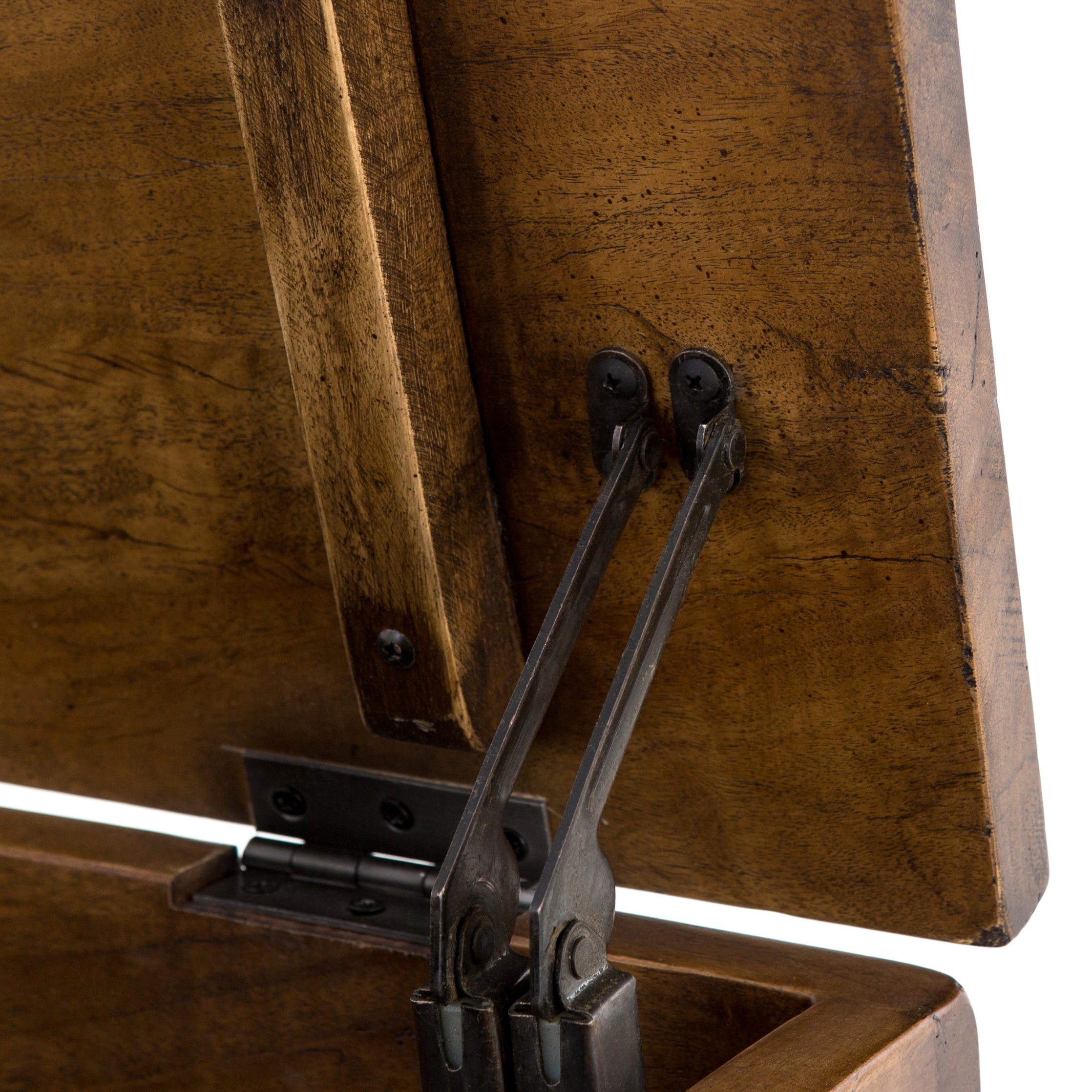 Rich, reclaimed woods deliver depth beyond streamlined shaping. Warm brown tones reveal natural knots and graining for a distinctively found feel. Spacious trunk space perfect in entryway or at the foot of the bed. Plinth base adds a modern touch.