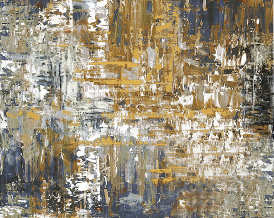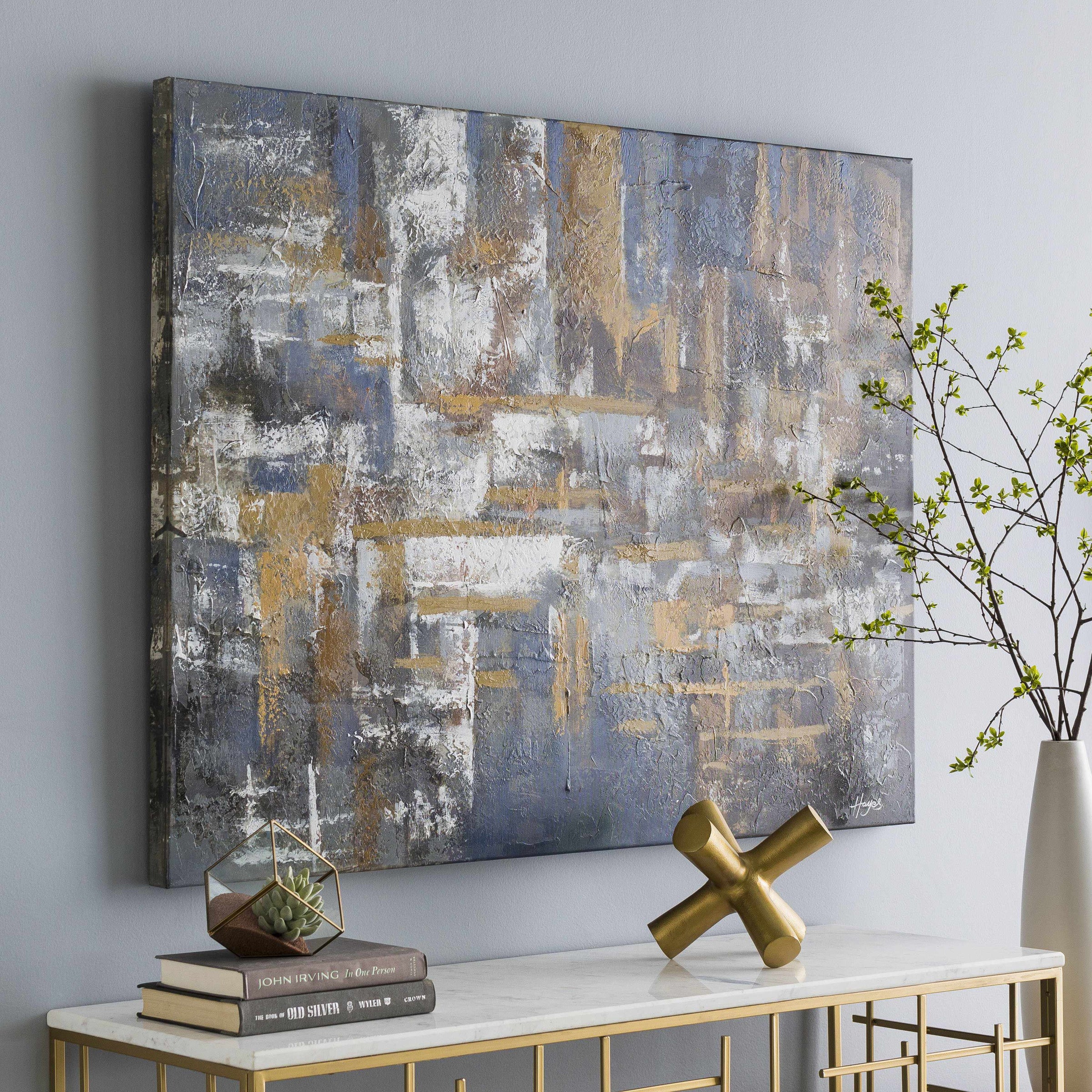 The Dupnitsa Wall Art Piece is a digitally-printed art on a 36"H x 48"W canvas. This abstract art features scribbled vertical and horizontal lines which are mainly in white, black, and gold paint.