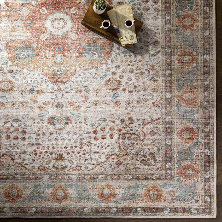 - Colors: Rust, Burnt Orange, Teal, Light Brown, Light Beige