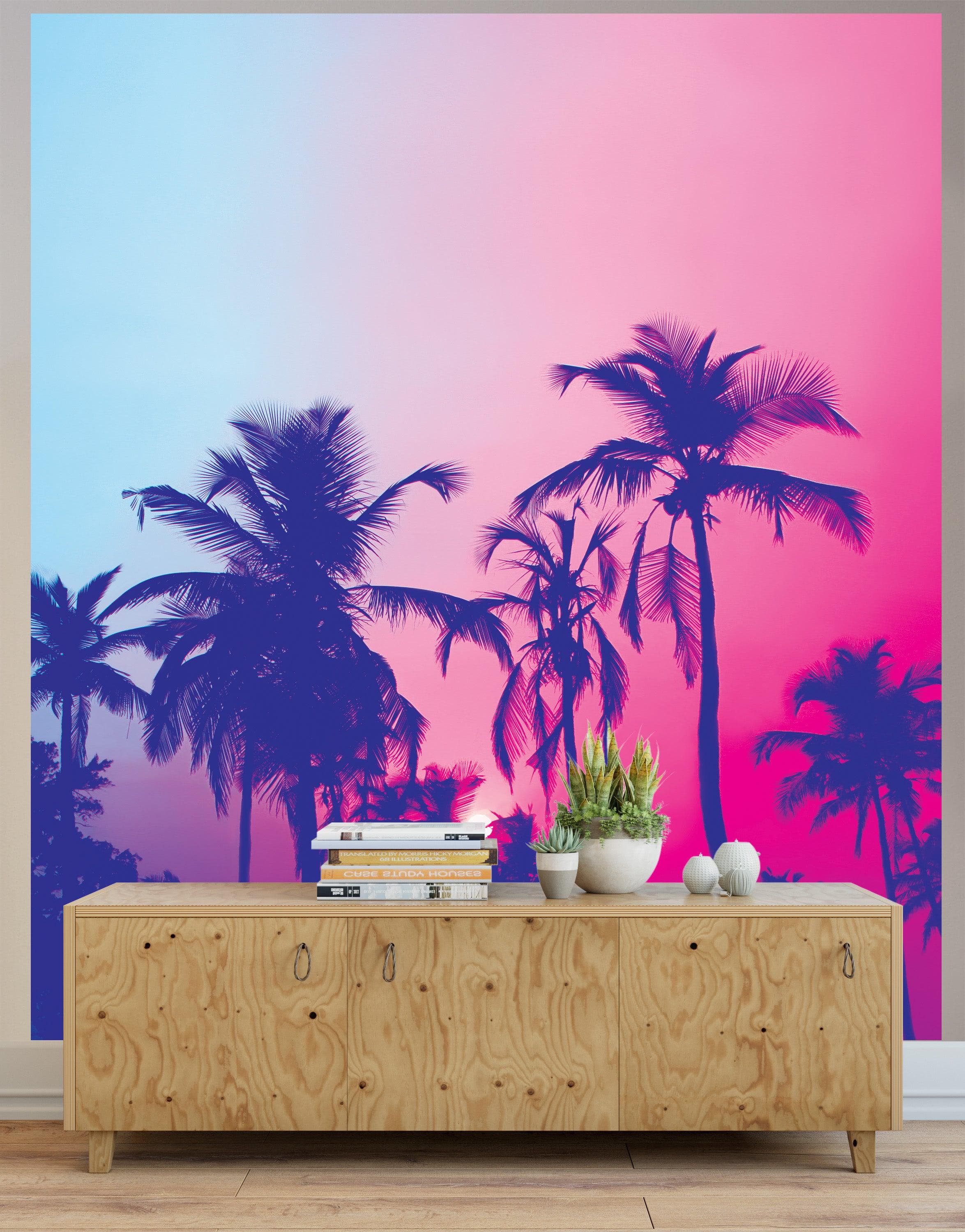 Miami Tropical Palm Tree Vice Color Wall Mural. Bright Miami Vice Blue