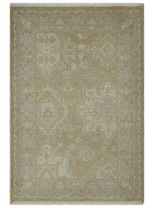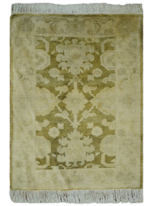 2x3 Hand Knotted Beige and Olive Traditional Persian Oushak Wool Rug | N323