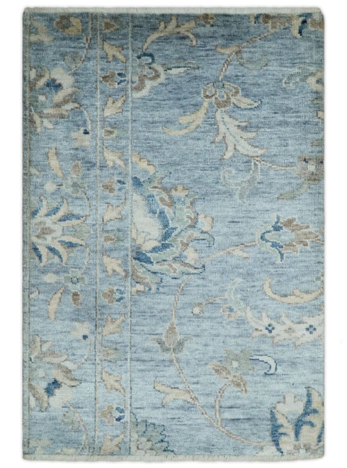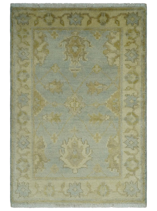 2x3 Hand Knotted Blue, Beige and Gray Traditional Persian Oushak Wool Rug | N7423