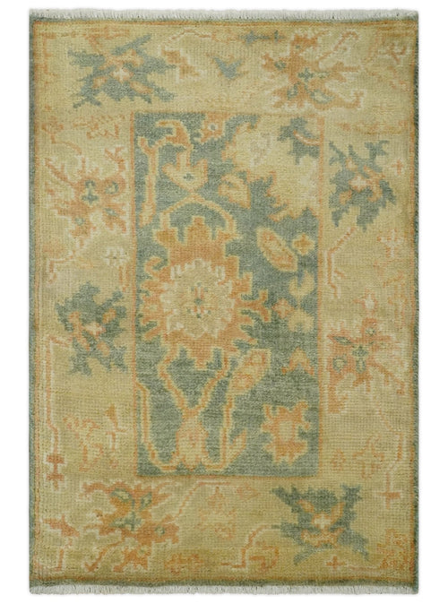 2x3 Hand Knotted Olive, Beige and Gray Traditional Persian Oushak Wool Rug | N423