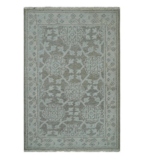 2x3 Hand Knotted Gray and Beige Traditional Persian Oushak Wool Rug | N7223