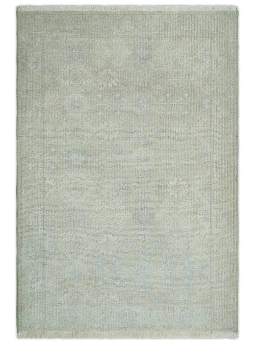 2x3 Hand Knotted Ivory and Gray Traditional Persian Oushak Wool Rug | N723