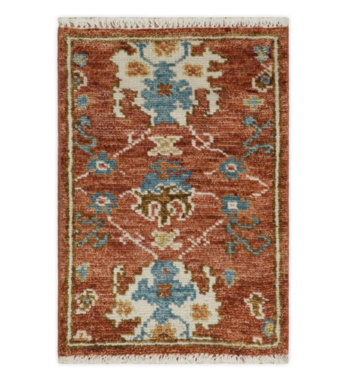 2x3 Ivory, Rust and Blue Hand Knotted Traditional Antique Persian Design Wool Rug | TRDCP79823