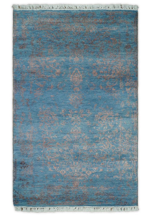 2x4 Fine Hand Knotted Peach and Blue Traditional Vintage Persian Style Antique Wool Rug | AGR25