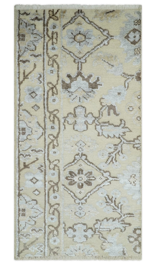 2x4 Hand Knotted Beige, silver and Brown Traditional Persian Oushak Wool Rug | N5524