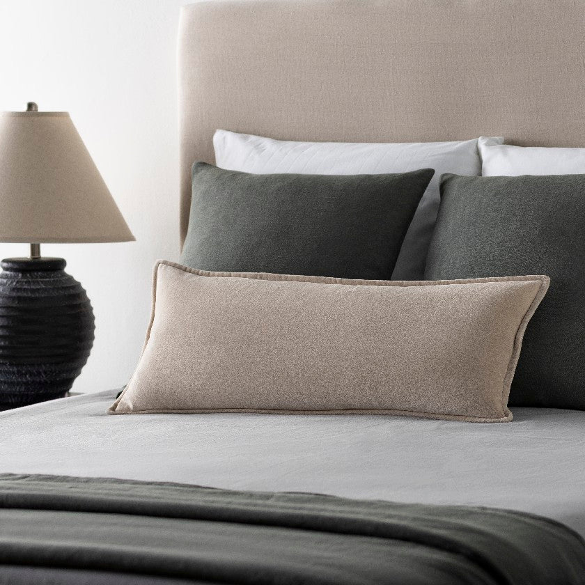 One word sophistication. That's what the Merelbeke Beige Pillow Cover is. Its beige tone doesn't only give an off-brown tone, but as well as a little bit of silver because of its velvet texture. Wear this on your pillows to add glimmer and dimensions to those little home accents. Available in lumbar shape.
