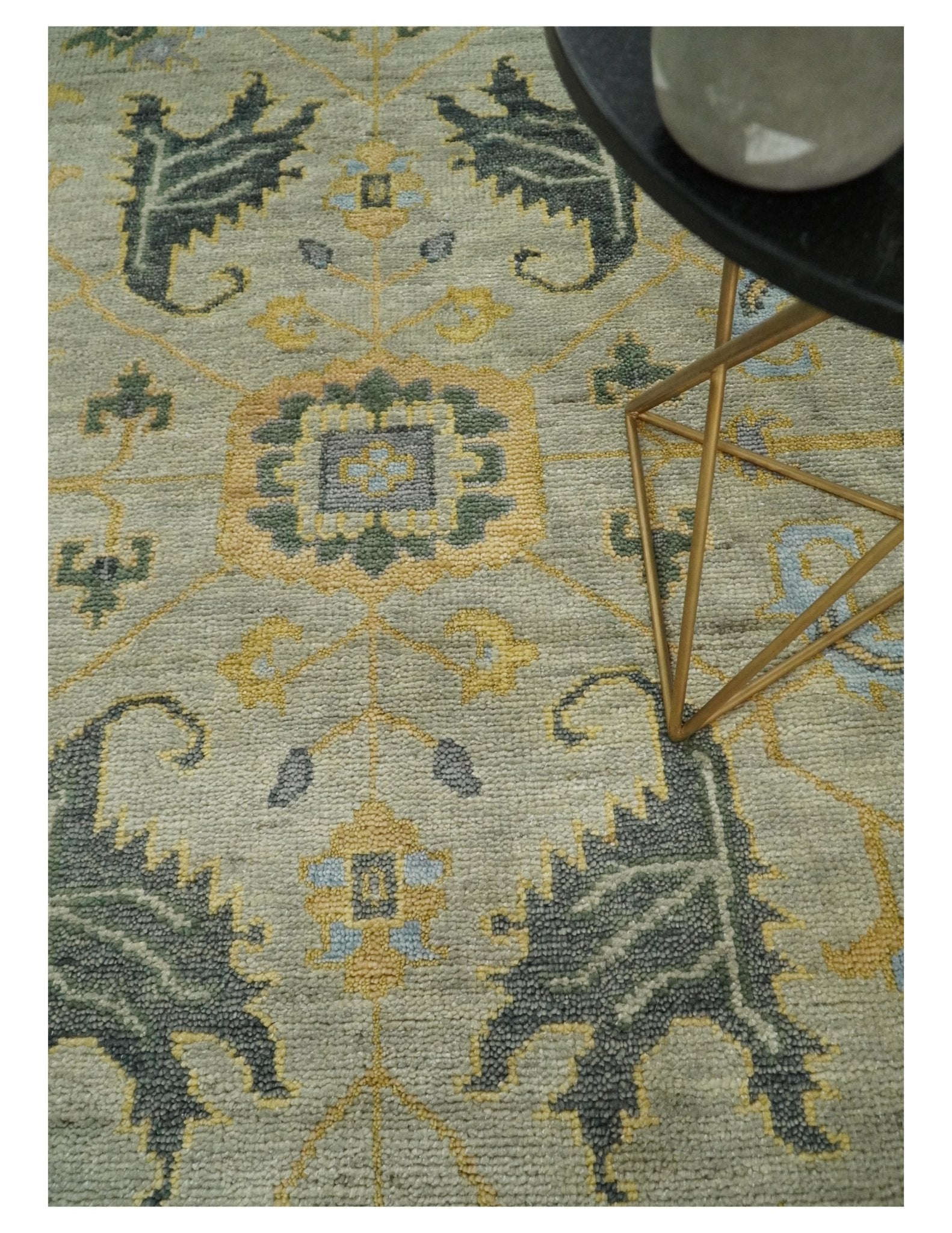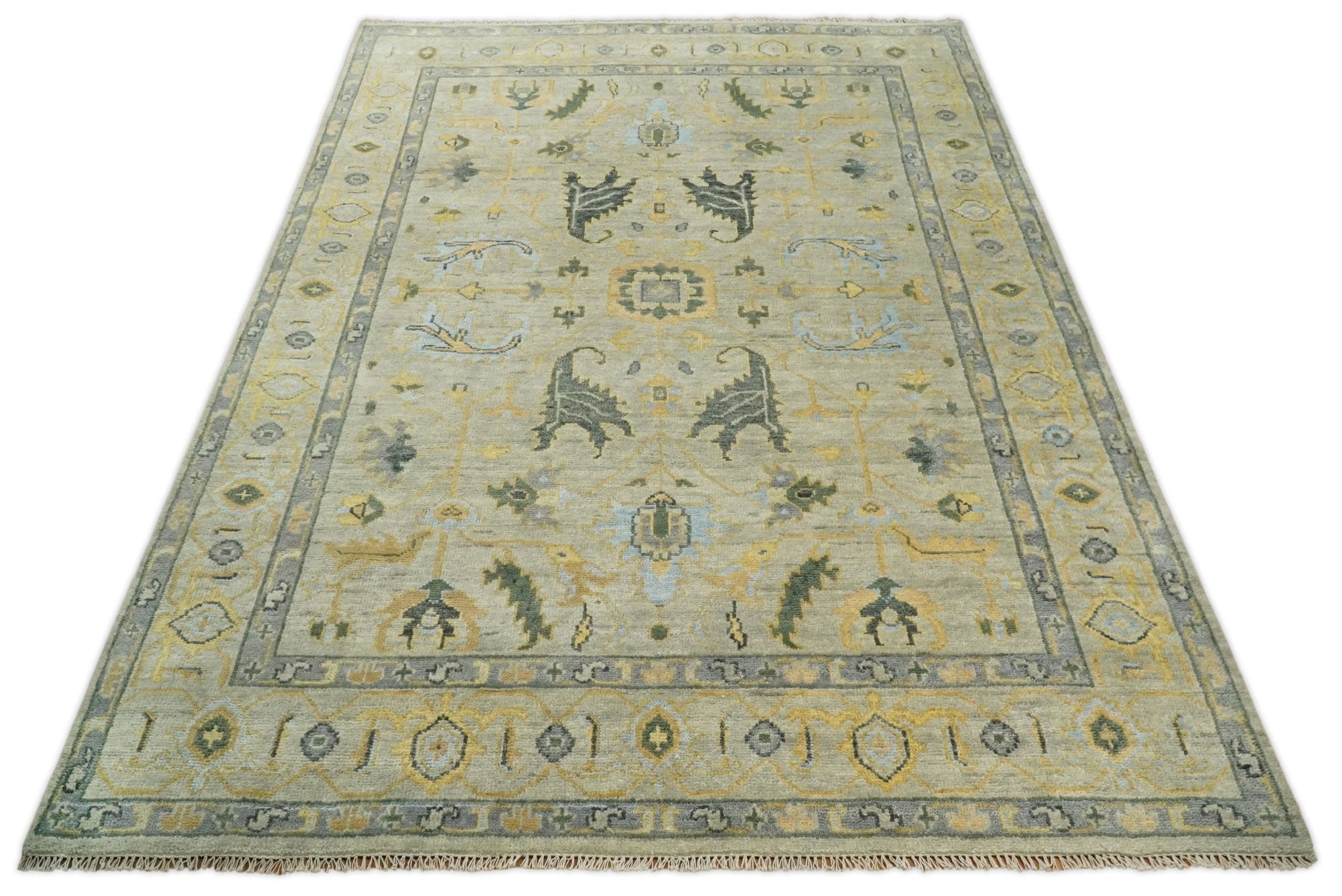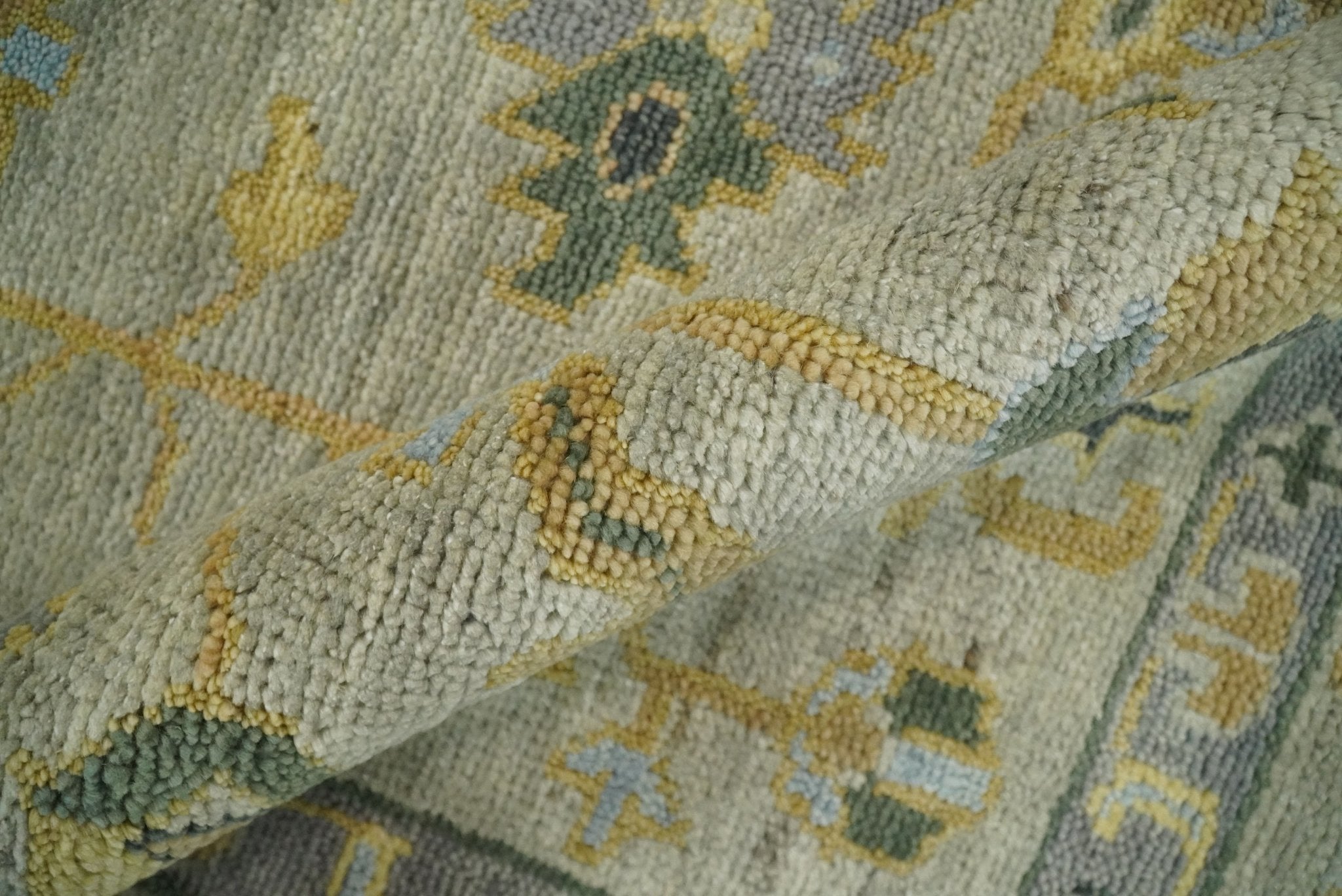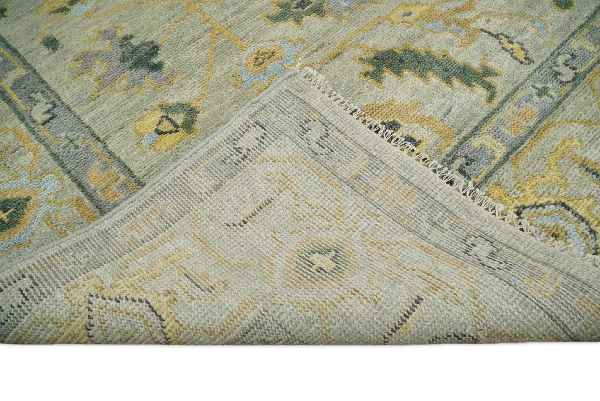Antique 9x12 Hand Knotted Beige and Silver Traditional Persian Vintage Oushak Wool Rug | TRDCP705912