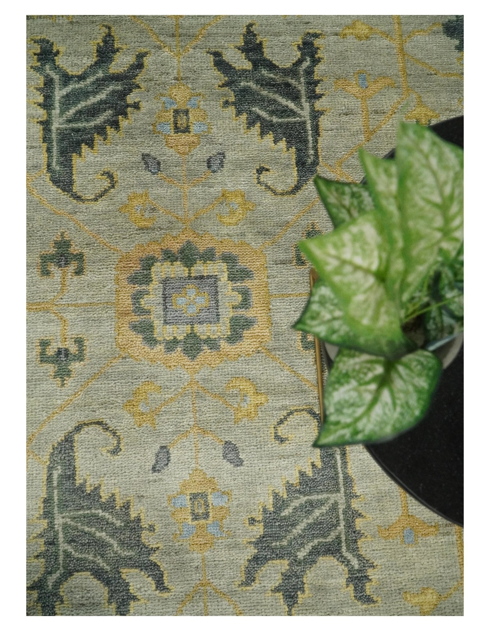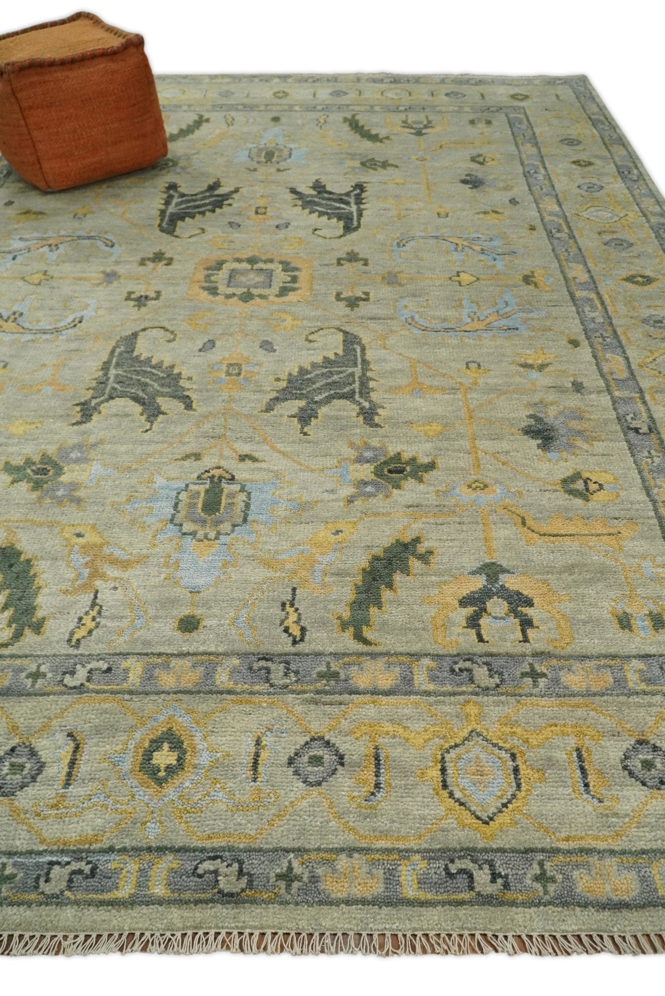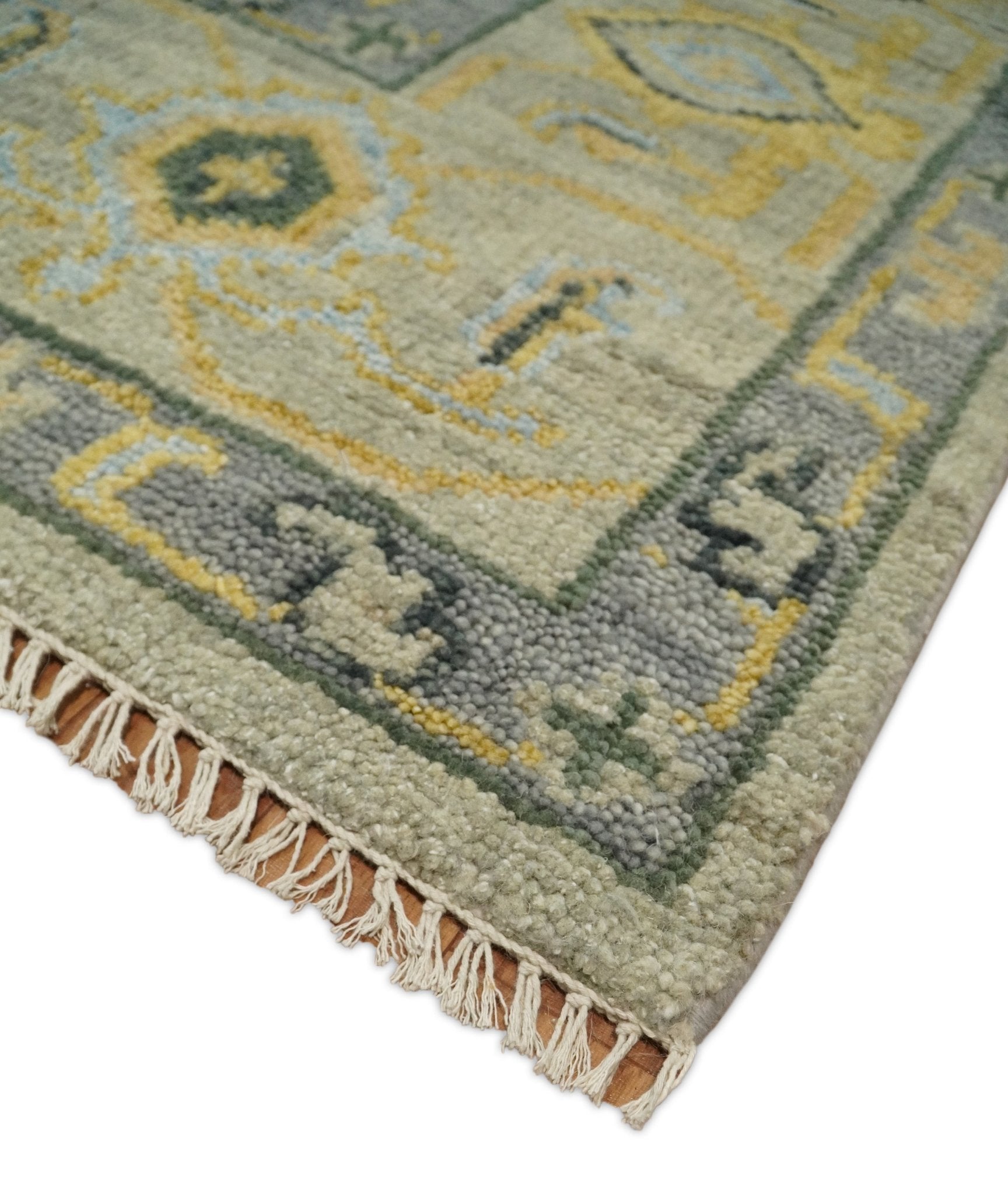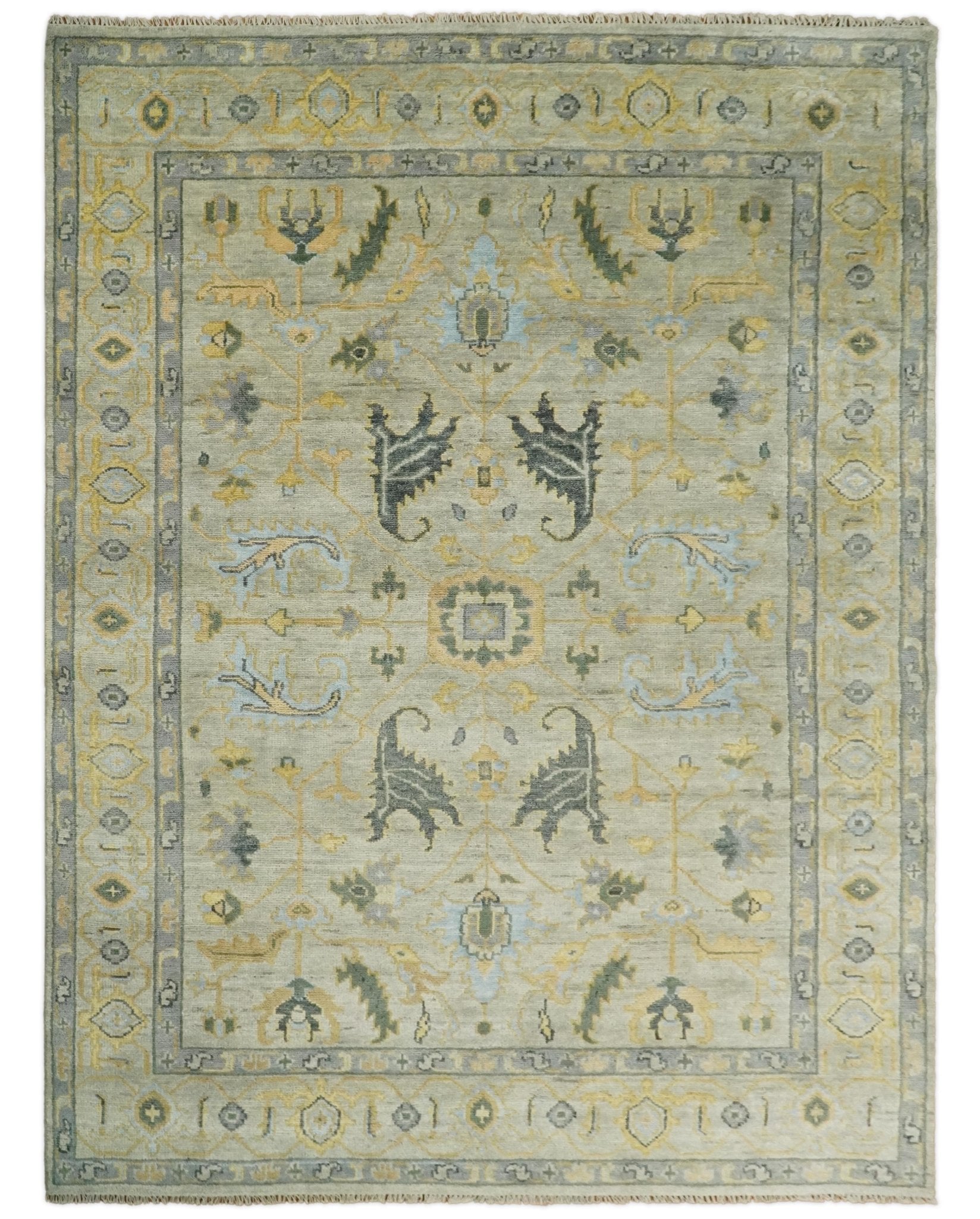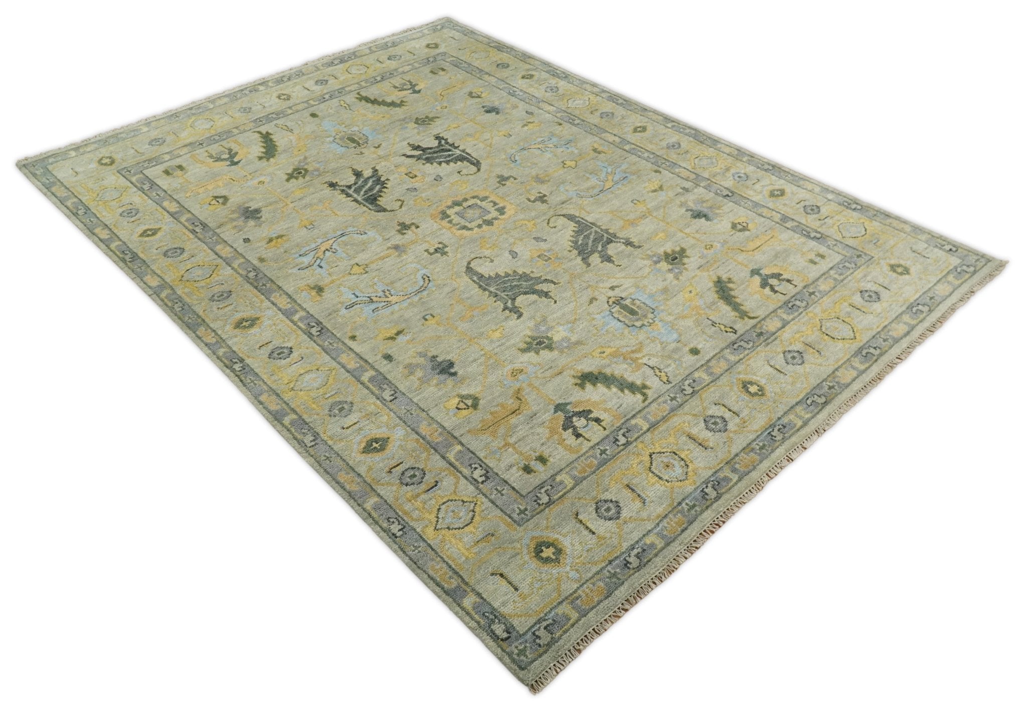 Antique 9x12 Hand Knotted Beige and Silver Traditional Persian Vintage Oushak Wool Rug | TRDCP705912