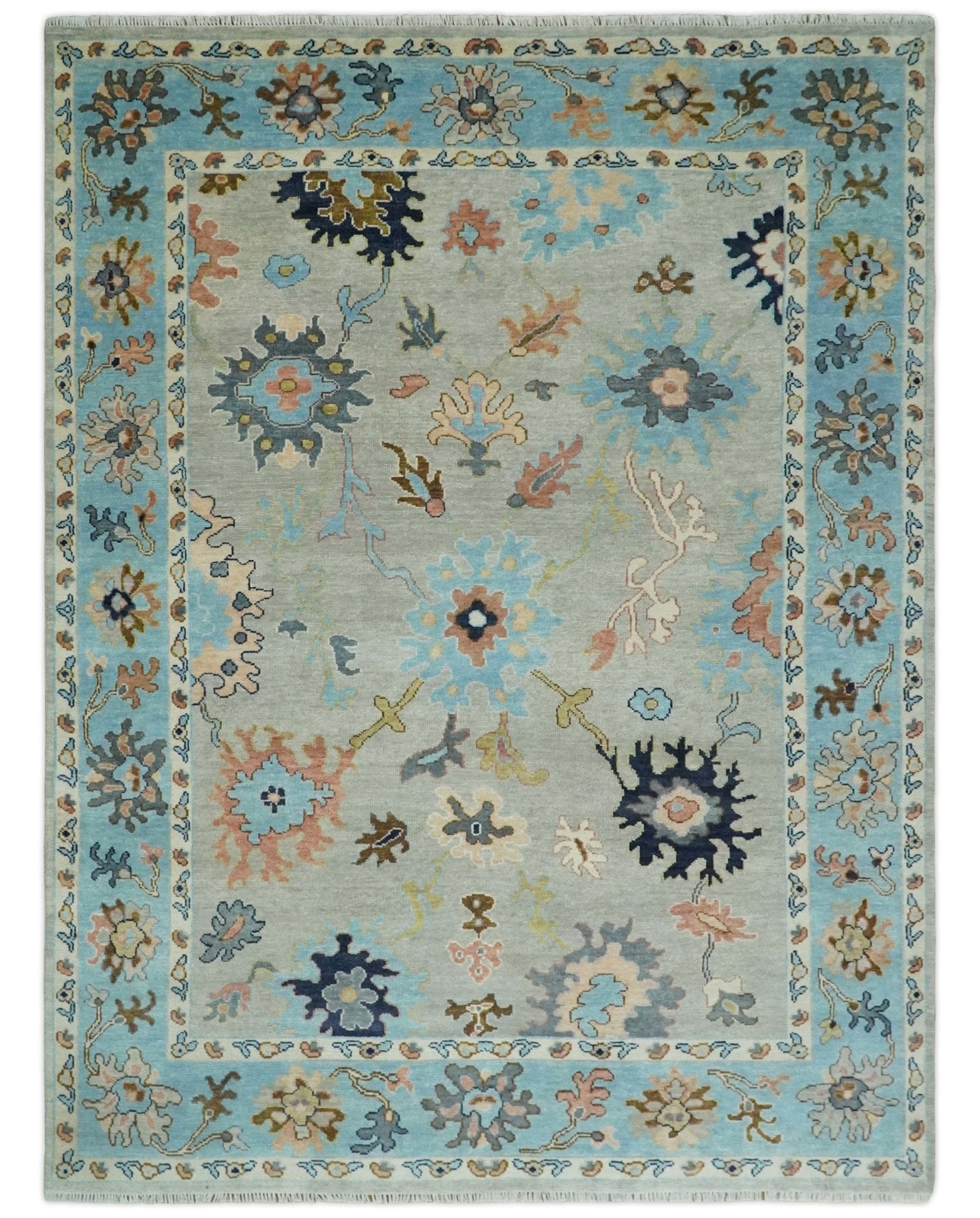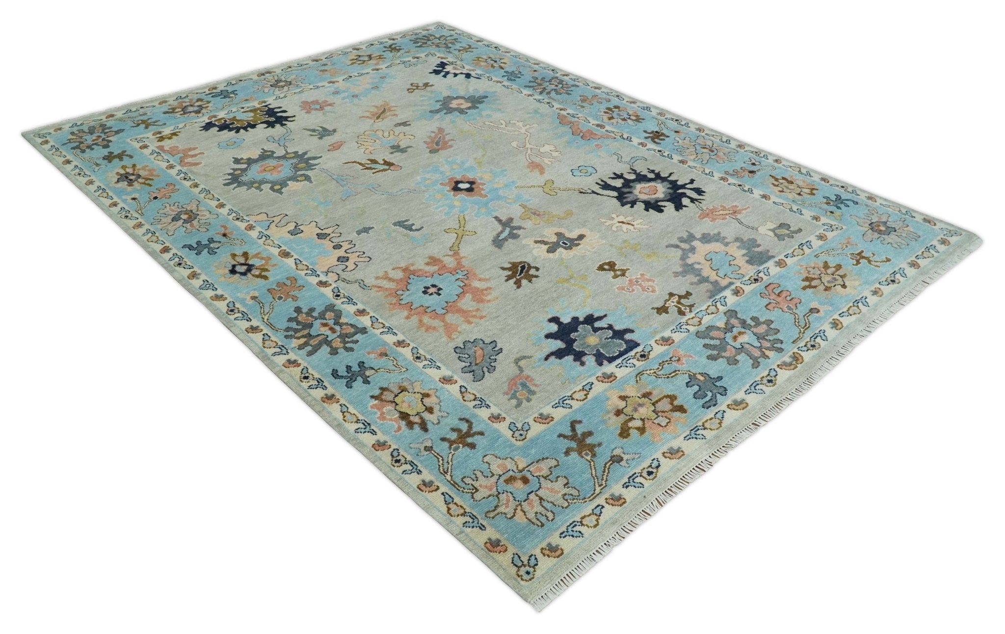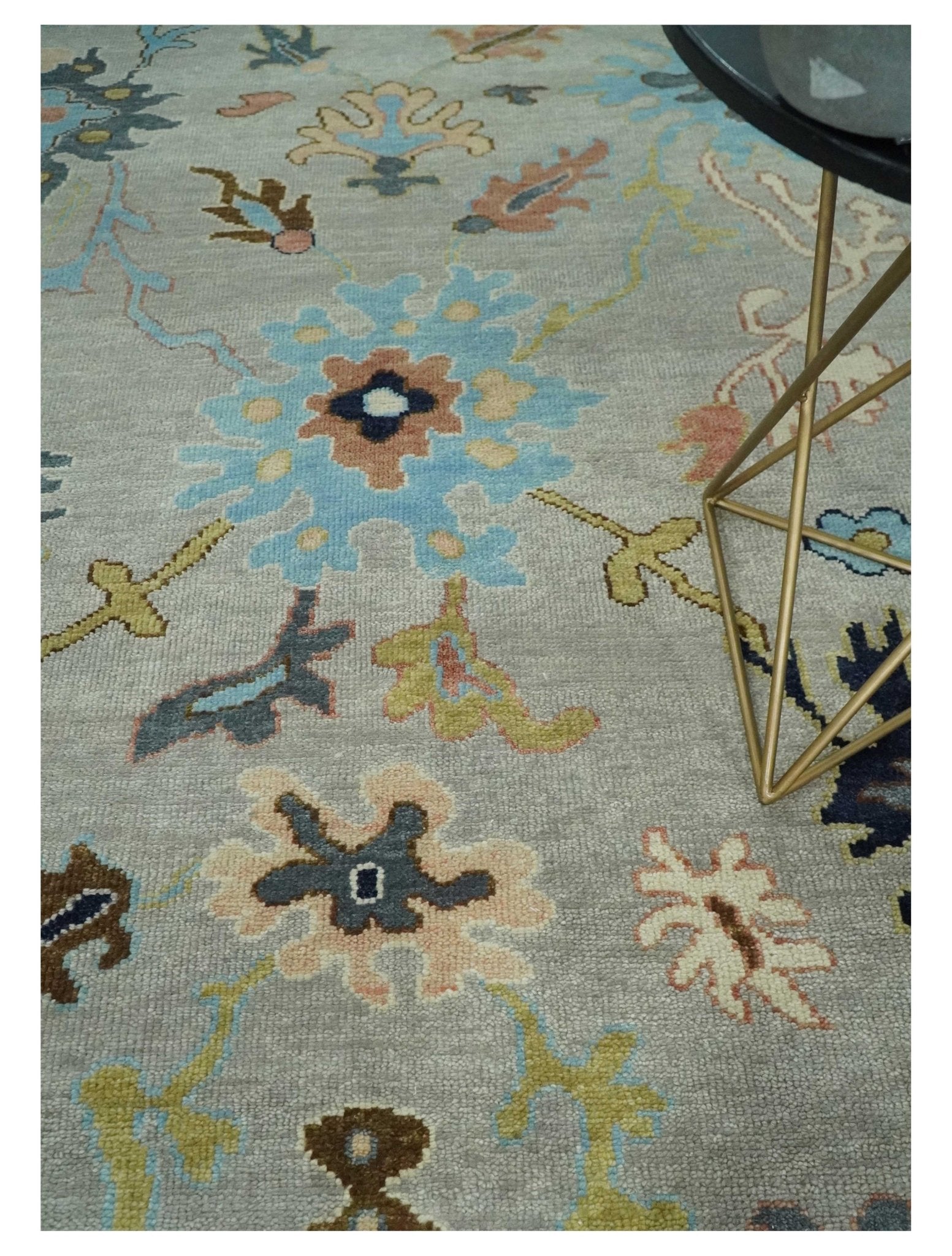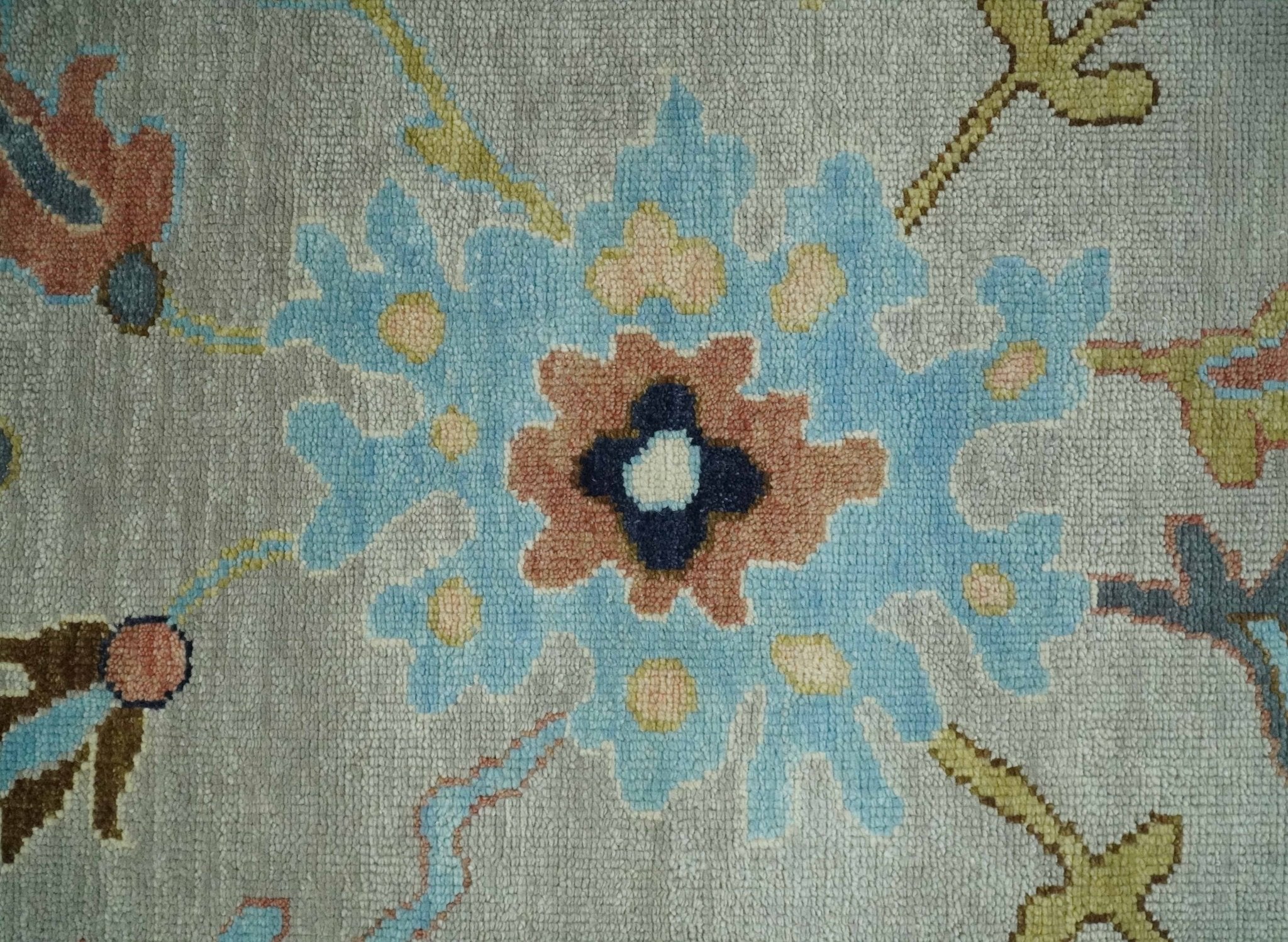 Antique Style 9x12 Wool Traditional Persian Gray and Blue Hand knotted Oushak Area Rug | TRDCP1074912